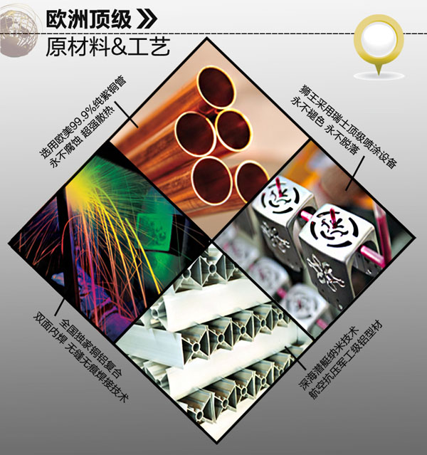 北京獅王散熱器是北京正遠昌榮熱能科技有限公司旗下所屬品牌,憑借多年在水暖五金行業的生產經驗,積累了豐富的散熱器生產加工經驗。在原料選材上嚴格把關,所用選的紫銅管是99%以上的純紫銅管,保證了散熱器最核心的功能——超強的防腐蝕性。在很多消費者關注的散熱器表面噴涂工藝方面,北京獅王采用的是先進的噴涂工藝,保證了散熱器表面色澤均勻牢固。此外,北京獅王散熱器在從眾多消費者的反饋中發現,很多消費者對散熱器的放氣閥感到很頭疼。消費者的煩惱就是獅王散熱器的動力,印有獅王logo的絲堵能很好解決消費者的苦惱。